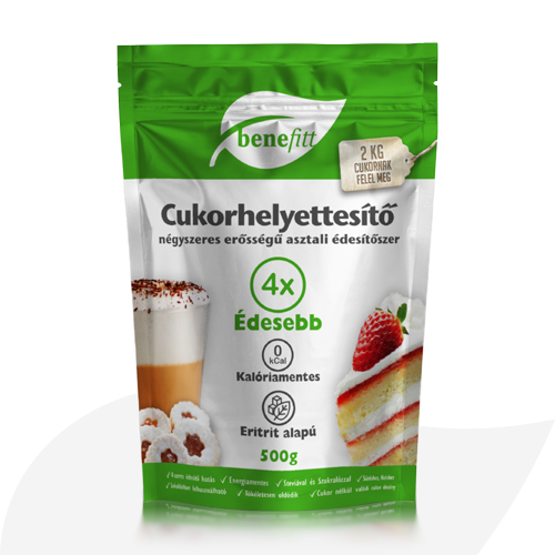BENEFITT Cukorhelyettesítő (Eritrit, Stevia, Szukralóz) 4x erősségű 500g